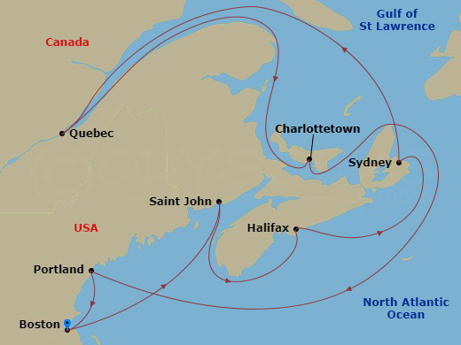 12 Night Boston return cruise itinerary map.